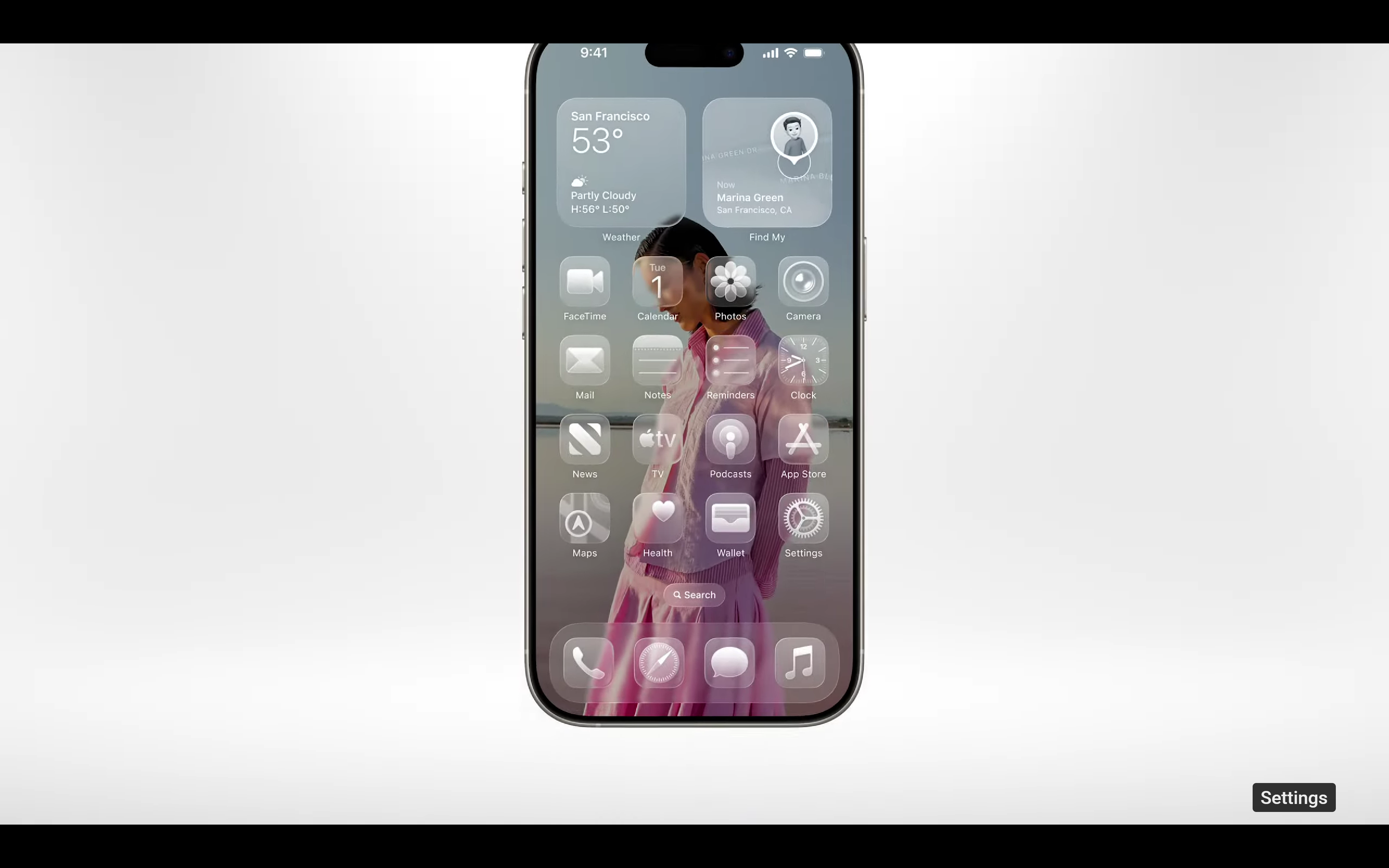 سیستم عامل جدید اپل به گونهای طراحی شده تا در تمامی بخشها طراحی شیشهای داشته باشد و حتی بازتاب نور را به زیبایی انعکاس دهد. حتی حالتی اضافه شده که شما میتوانید شکل آیکونهای آیفون خود را به حالت شفاف یا شیشهای دربیاورید و حس و حال جدیدی به وجود بیاورید. گذشته از این طراحی جدید، ظاهر آیکونها نیز مقداری تغییر کرده است تا با این زبان طراحی سازگارتر شوند.