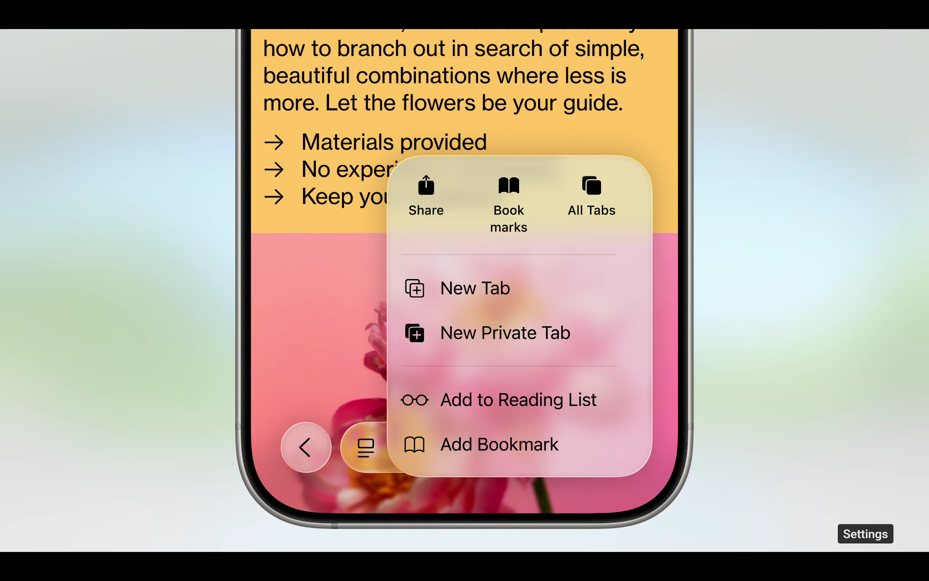 سرچ بار سافاری تغییر جذابی داشته و به شکل شیشهای درآمده است تا با محتوای مختلف سازگاری داشته باشد و سریعا با پسزمینه هماهنگ شود. زمانی که وارد یک سایت شوید در این آپدیت جدید سایت کل صفحه را در اختیار خواهد گرفت و سرچ بار به شکل شیشه و کوچک درمیآید تا مزاحم دیدن محتوا نشود و همچنین حس سازگاری بیشتری را هم ایجاد کند.