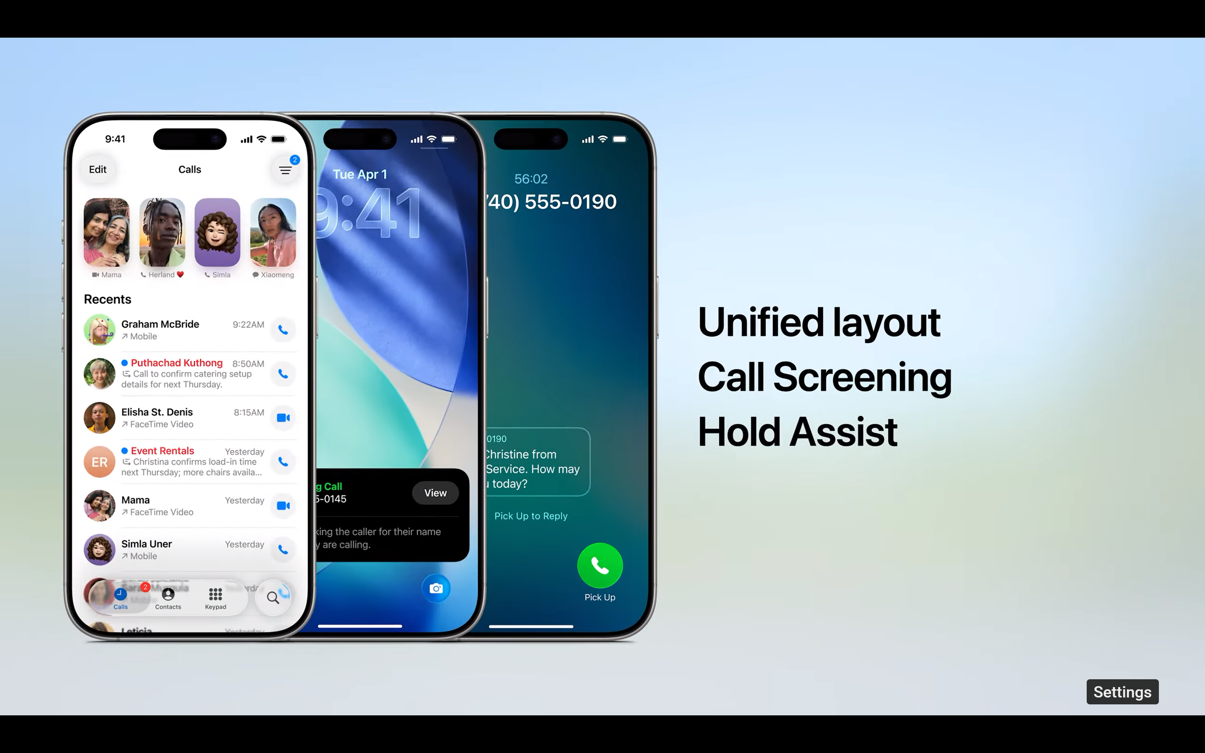 جالب است که حالا شمارههای ناآشنا به بخشی جداگانه منتقل میشوند و اگر آیفون تشخیص دهد که تماس تبلیغاتی است از زنگ خوردن گوشی خودداری میکند. همچنین اپل قابلیتی اصافه کرده که دستیار هوشمند بتواند به جای شما در صف انتظار تماس باقی بماند و در لحظه برقرار شدن تماس آن را به شما خبر دهد.