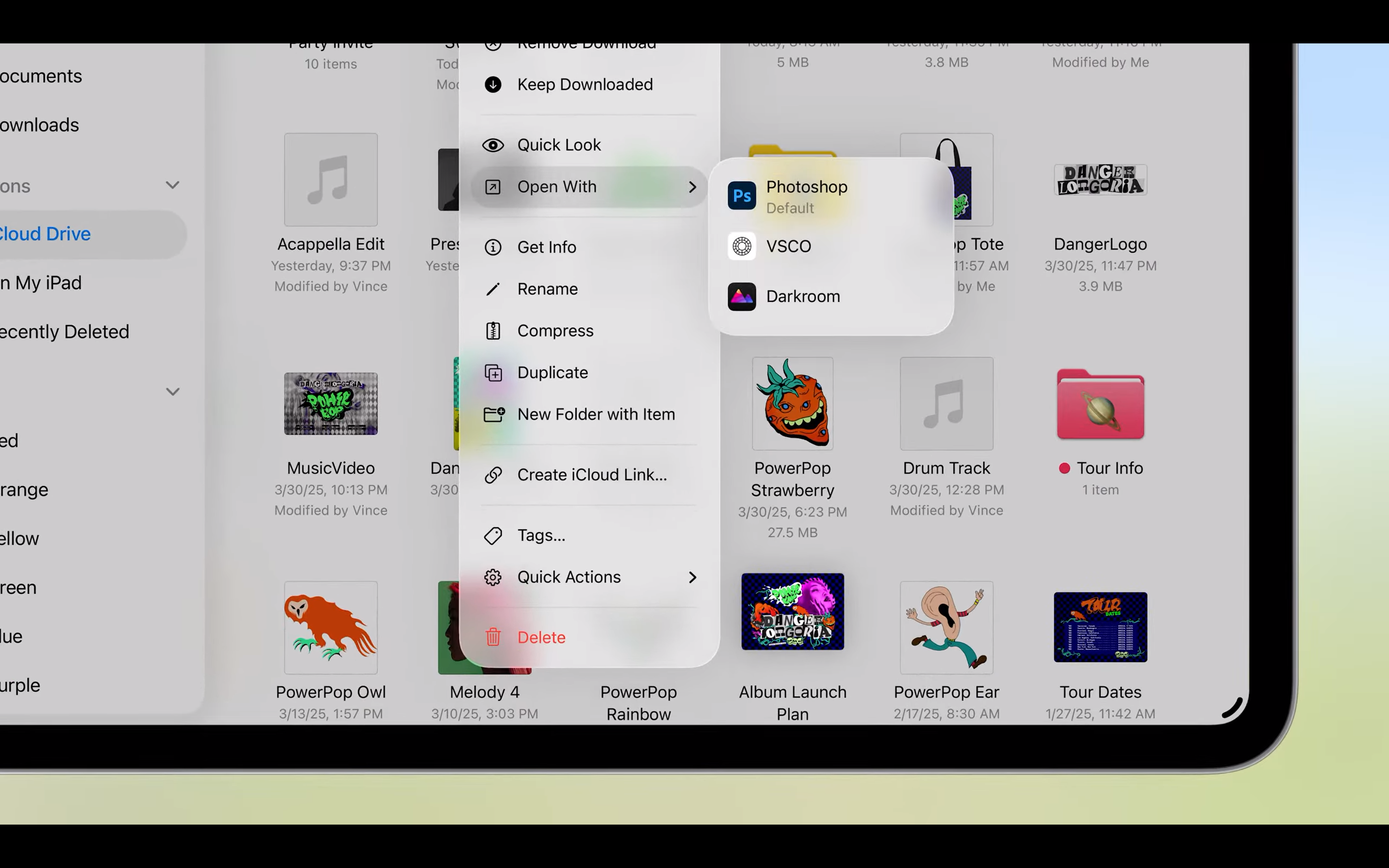 در برنامههای مرتبط دقیقا مانند مک بوکهای این سازنده آمریکایی حالا در بالای صفحه نمایش گزینههای مرتبط نمایش داده میشود و همه این تغییرات در راستایی اتفاق افتاده که به کاربران اجازه دهد از قدرت بسیار بالای آیپدهای استفاده بیشتری ببرند.